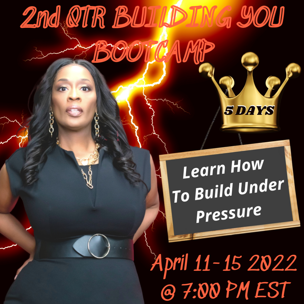 Learn How To Build Under Pressure. It's Time To Move! Join me for our Building You 5-Day Boot-Camp on April 11-15, 2022.